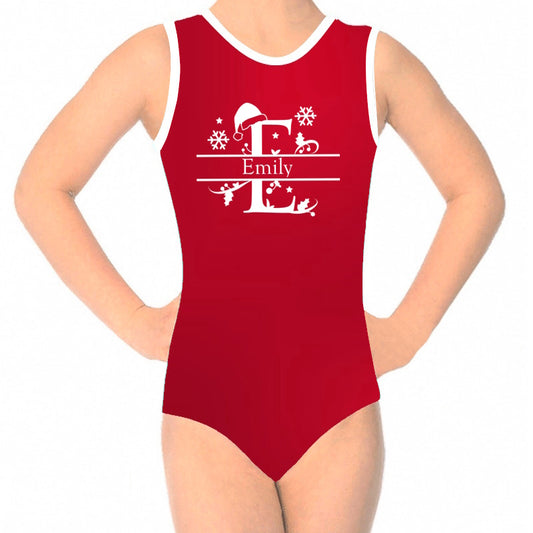 CHRISTMAS INITIAL - RED - LEOTARD or BIKETARD