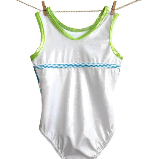 CHRISTMAS INITIAL - WHITE SPARKLE - LEOTARD or BIKETARD